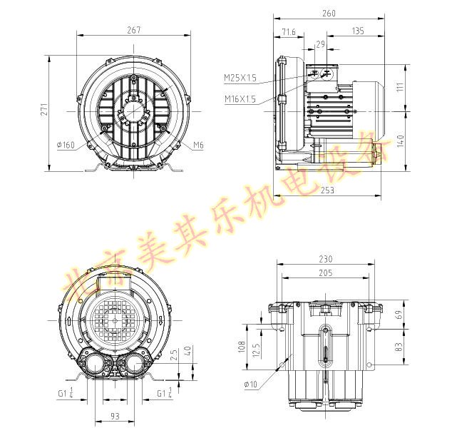 - 屬性參數表: 50HZ參數 60HZ參數 葉輪: 雙 (級) 葉輪: 雙 (級) 功率: 1.3 (Kw) 功率: 1.5 (Kw) 輸出電壓: 200-240V (V) 輸出電壓: 200-240V (V) 電流: 7.6 (A) 電流: 8.8 (A) 噪音: 66 dB(A) 噪音: 69 dB(A) 重量: 18 (Kg) 重量: 18 (Kg) 排吸氣量: 110 (m 3 /h) 排吸氣量: 145 (m 3 /h) 吸入壓力: -240 (mbar) 吸入壓力: -230 (mbar) 排氣壓力: 280 (mbar) 排氣壓力: 260 (mbar) 320-1.3kw風機尺寸圖: