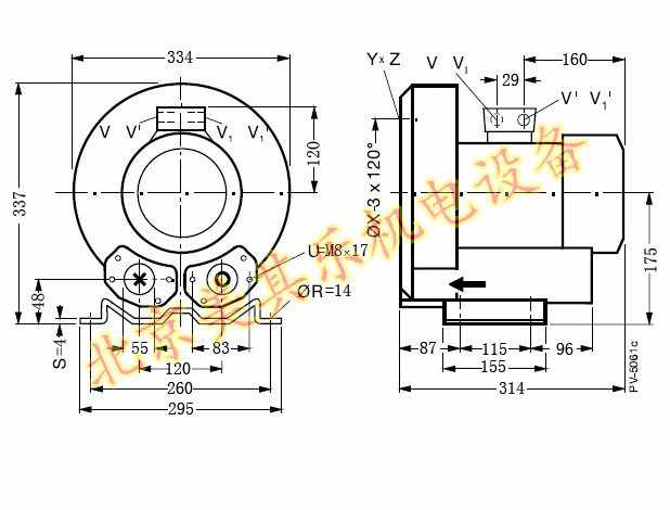2GH510/單相1.5kw高壓鼓風機尺寸圖: