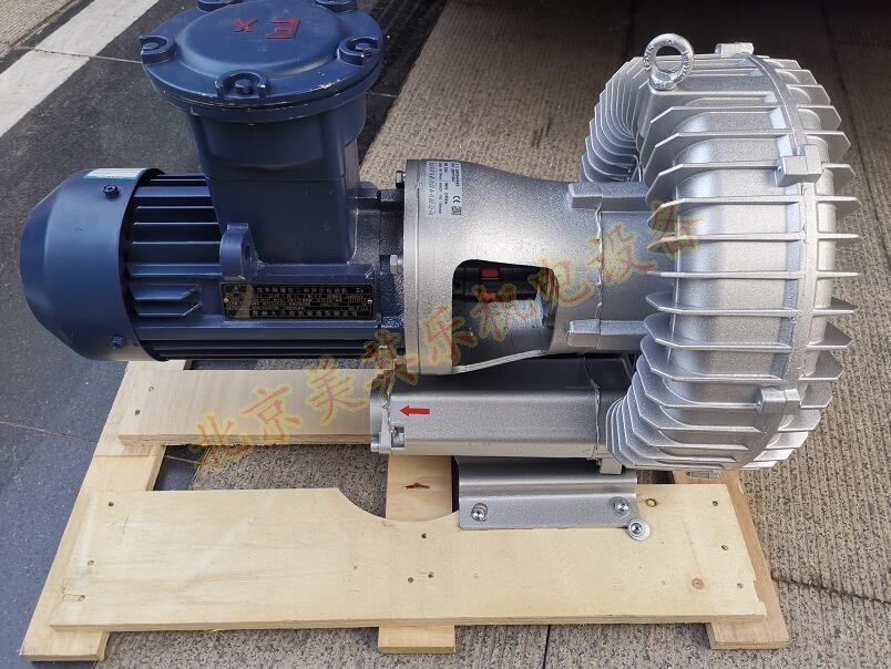 防水汽耐油污高壓吹吸風機,改變常規風機樣式,軸承采用中置,放到葉輪里側,防爆電機與泵頭采用聯軸器鏈接,充分隔離水汽,外加隔離罩,防水防塵,同時在風機高速運行時,能保護操作人員安全。