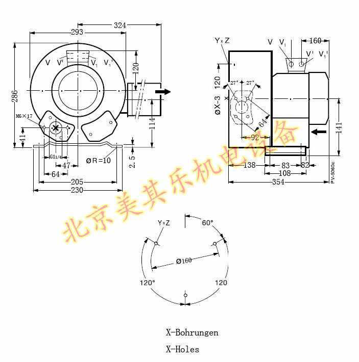 1.3kw雙段高壓鼓風機尺寸圖:單位mm